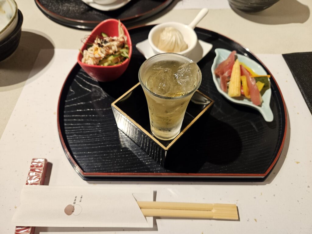 お鍋の用意をしていただいている間に前菜と食前酒を頂きます。