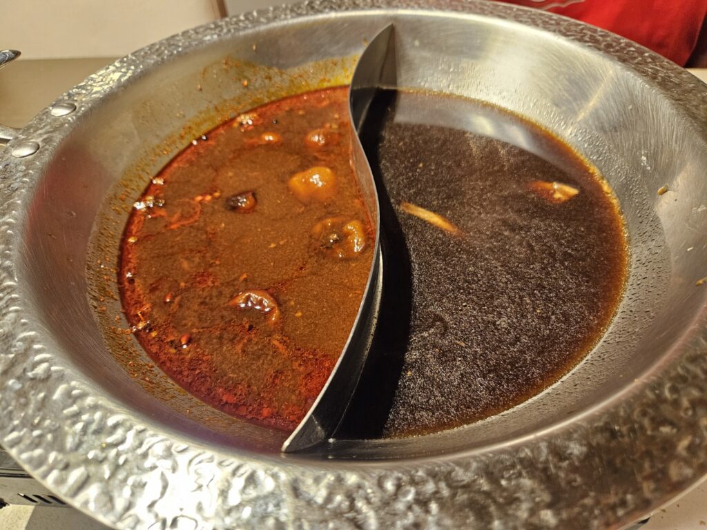 見るからに辛そうな麻辣スープ、きのこの旨みが凝縮されたきのこスープはとても良い香りがします。