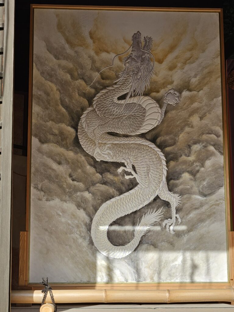 社殿に掲げられた九頭竜の図|九頭竜信仰の象徴