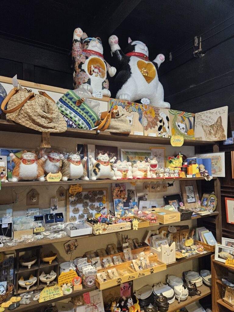 大小さまざまな招き猫がずらりと並び、まるで猫の福に包まれているかのような感覚になります。販売スペースも充実しており、