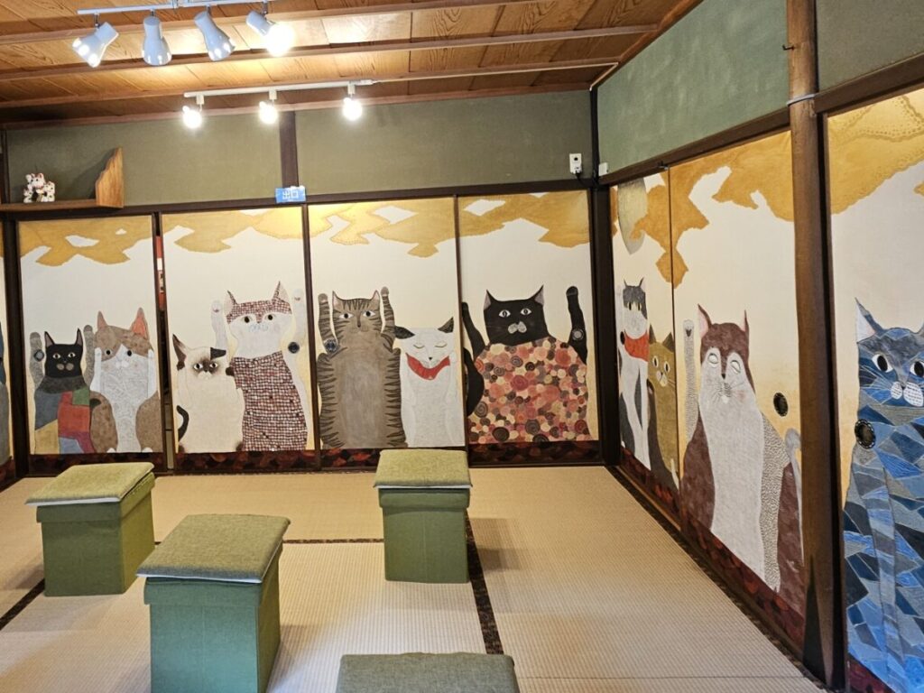 猫猫寺最大の見どころのひとつが、部屋一面に描かれた猫の襖絵です。